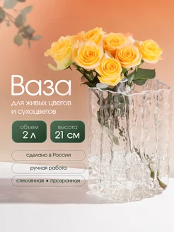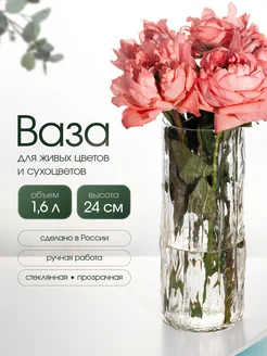 Ваза стеклянная для цветов и сухоцветов прозрачная 23 см