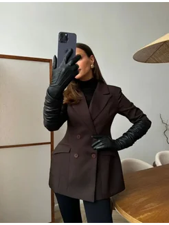 Пиджак жакет приталенный коричневый
