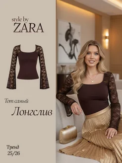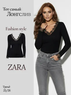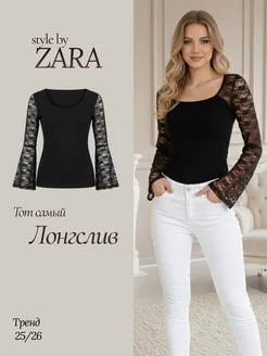 Лонгслив облегающий с кружевом и длинным рукавом