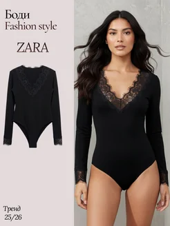 Лонгслив боди облегающее с кружевом и длинным рукавом