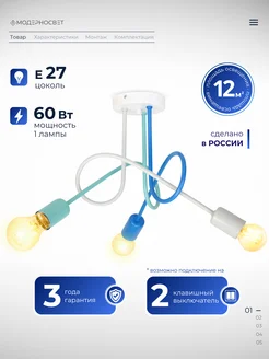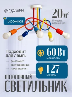 Люстра потолочная с лампочками на кухню в спальню детскую