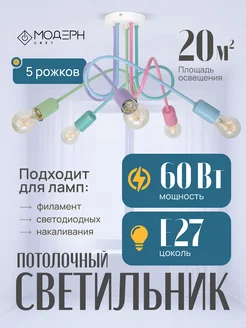 Люстра потолочная с 5 лампочками на кухню в спальню детску