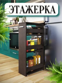 Этажерка для кухни на колесиках узкая деревянная