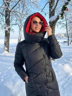 Пуховик зимний длинный с капюшоном
