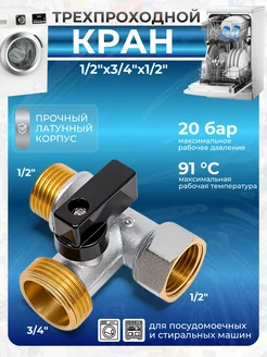 Кран шаровый Frap трехпроходной 1 2"-3 4"-1 2"