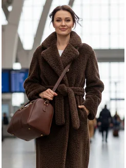 Шуба искусственная зимняя длинная шоколадная тедди