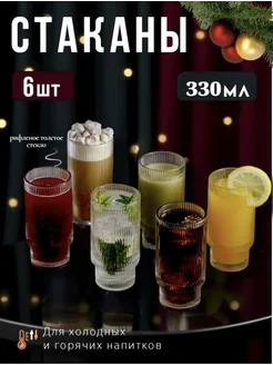 Стаканы стеклянные 330 мл набор 6 шт. высокие для кофе