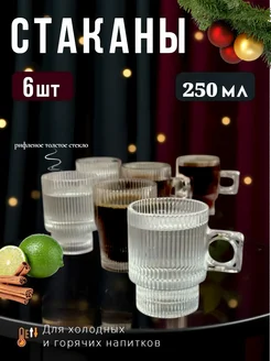 набор стеклянных стаканов с ручкой для чая и кофе 6шт