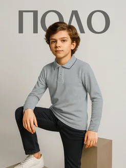 Серая футболка поло с длинным рукавом для школьников