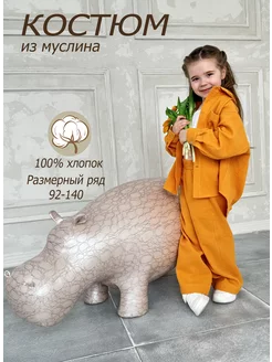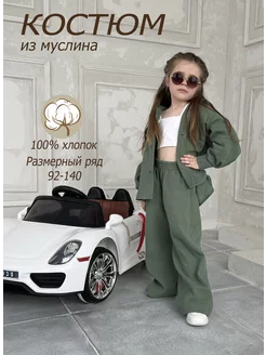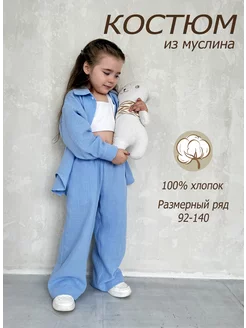 Летний брючный костюм из муслина с рубашкой оверсайз