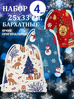 Новогодние мешочки подарочные для конфет и сладостей бархат