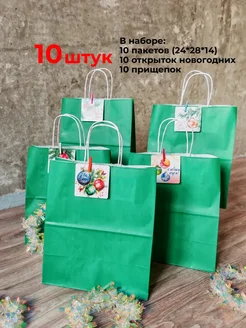 Подарочный пакет новогодний крафт, бумажный,набор 10 штук