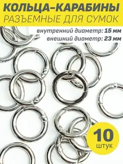 Кольцо карабин для сумок для рукоделия набор 10шт d 15 23 мм