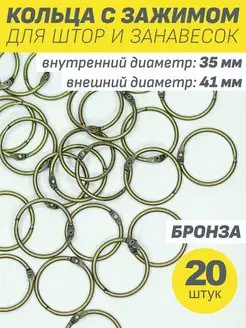 Кольца металлические для штор карниза в ванную бронза 41 мм