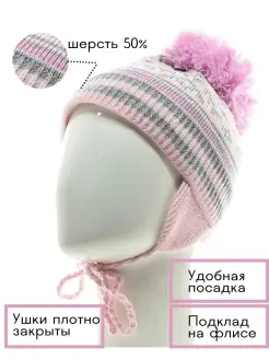 Шапка зимняя с помпоном с завязками тёплая для девочки