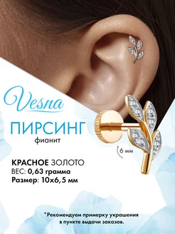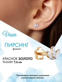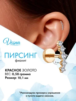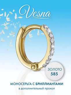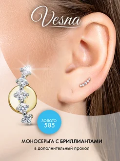Пирсинг моносерьга золото 585 бриллианты якутские