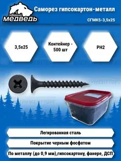 Саморез гипсокартон-металл СГМ 3,5х25 контейнер 500 шт