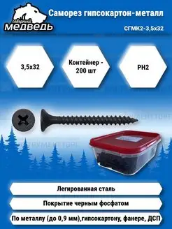 Саморез гипсокартон-металл СГМ 3,5х32 контейнер 200 шт
