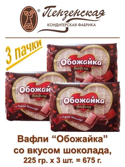 Вафли "Обожайка", вкус шоколада, 225 гр, 3 пачки, ПКФ