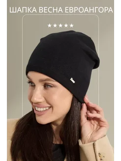 Шапка черная осенняя весенняя Бини из евроангоры с флисом