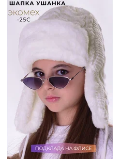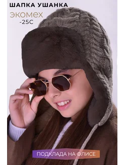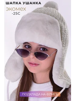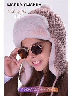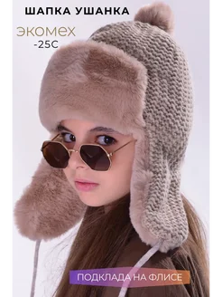 Шапка ушанка вязаная зимняя из экомеха на флисе детская
