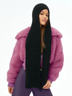 Шапка шарф чепчик с длинными ушами вязаный, шапка-шарф