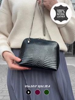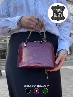 Сумка лаковая маленькая с цепочкой натуральная кожа