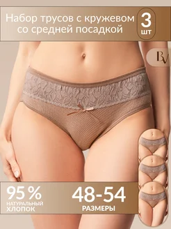 Трусы набор хлопок кружевные ажурные бразильяна 3 шт