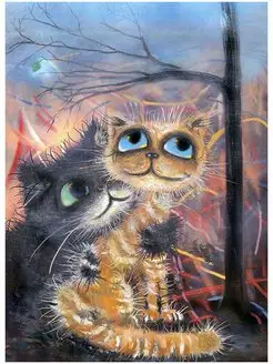 Картина с кошками "Первый поцелуй", 32х23см