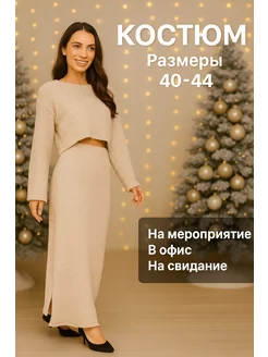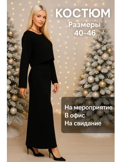 Костюм вязанный с юбкой макси осенний