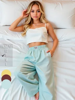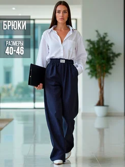 Брюки в полоску палаццо на резинке легкие
