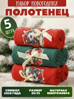 Кухонные полотенца подарок на Новый год 35х75 см - 5 шт