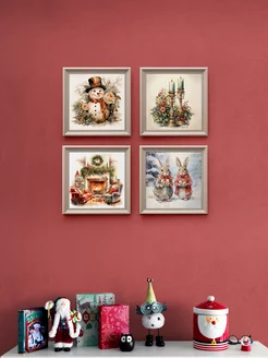 Картины на стену интерьерные на холсте 4 шт, 23*23 см