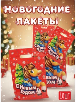Полиэтиленовые пакеты с лошадью новогодний набор 10шт