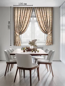 Шторы короткие 180 на 135 см димаут бежевые с подхватами