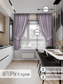 Шторы короткие 180 на 135 см димаут лавандовые с подхватами