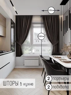 Шторы короткие 180 на 140 см бархат коричневые с подхватами