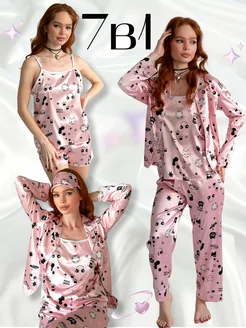 Пижама y2k шелковая со штанами и шортами 7 в 1