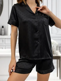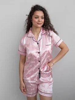 Пижама шелковая с шортами и рубашкой домашний костюм