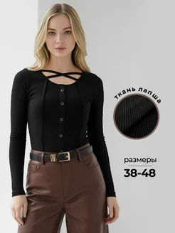 Лонгслив нарядный облегающий в рубчик