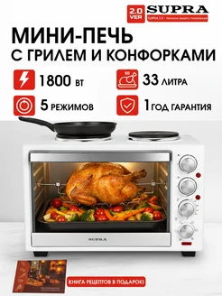 Мини печь электрическая с грилем и конфорками 33 л, 1800 Вт