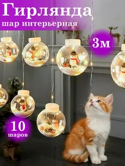 Новогодняя гирлянда шар "Снеговик" 3 метра