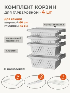 Комплект корзин с механизмами и кронштейнами для гардеробной
