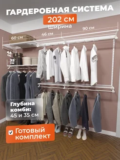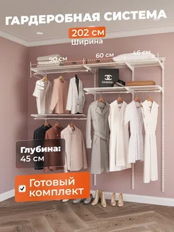 Гардеробная система настенная для хранения одежды на 202 см