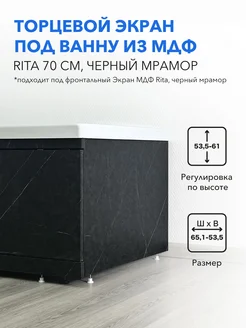 Торцевой экран под ванну Rita 70 см черный мрамор, из МДФ