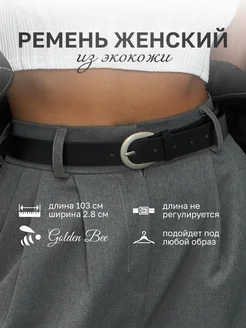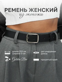 Ремень для джинс платья и брюк кожаный черный