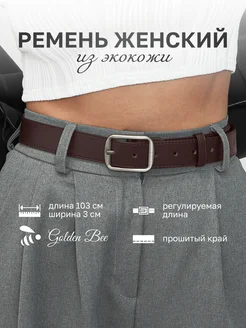 Ремень для джинс платья и брюк кожаный коричневый