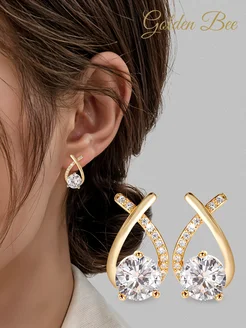 Серьги-пусеты гвоздики с позолотой и фианитами