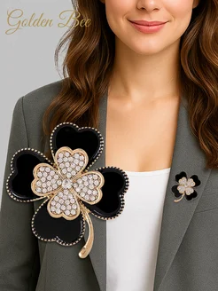 Брошь Клевер четырехлистный черный на булавке