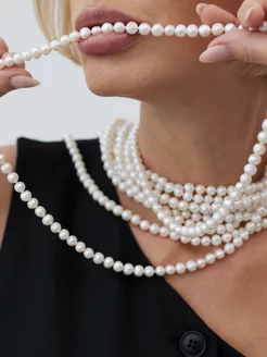 Модные бусы-аксессуар из натурального жемчуга 120 см